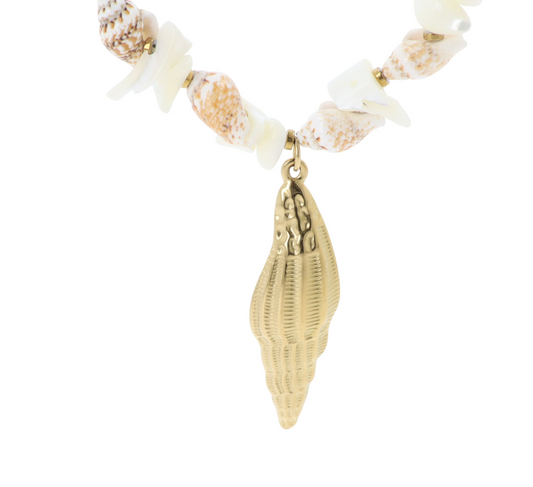 Collana Donna con Conchiglie Naturali e Pendente Conchiglia Dorato