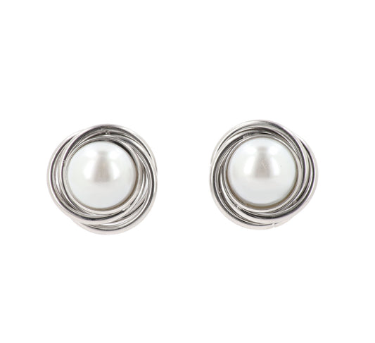 Orecchini Donna a Lobo Cornice Intrecciata con Perla