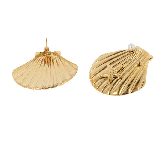 Orecchini Donna Conchiglia Grande con Perla e Stella Marina